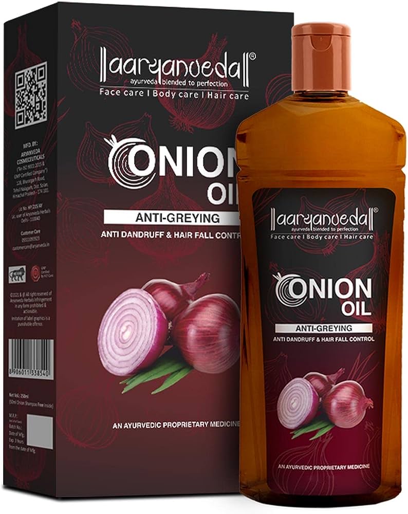 Aaryanveda Onion Oil has been made with the choicest of ingredients that work together to strengthen the hair shafts from within. The Onion Oil has ingredients like, Black Seed Oil, Bhringraja and Coconut Oil as its star ingredients. The Onion Oil has several benefits that include, anti-dandruff & hair fall control. Applying the oil elevates the scalp and hair follicles. Onion Oil is rich in sulfur which prevents breakage, split ends and thinning of hair. Other nutrients present in onion prevents oxidation of hair. It also maintains the regular pH of the hair. Onion Oil helps in effectively optimizing hair growth cycle due to the presence of plenty of antioxidants which particularly works for boosting the functioning of certain enzymes that work together in preventing hair fall. It is a magical oil for promoting hair growth.