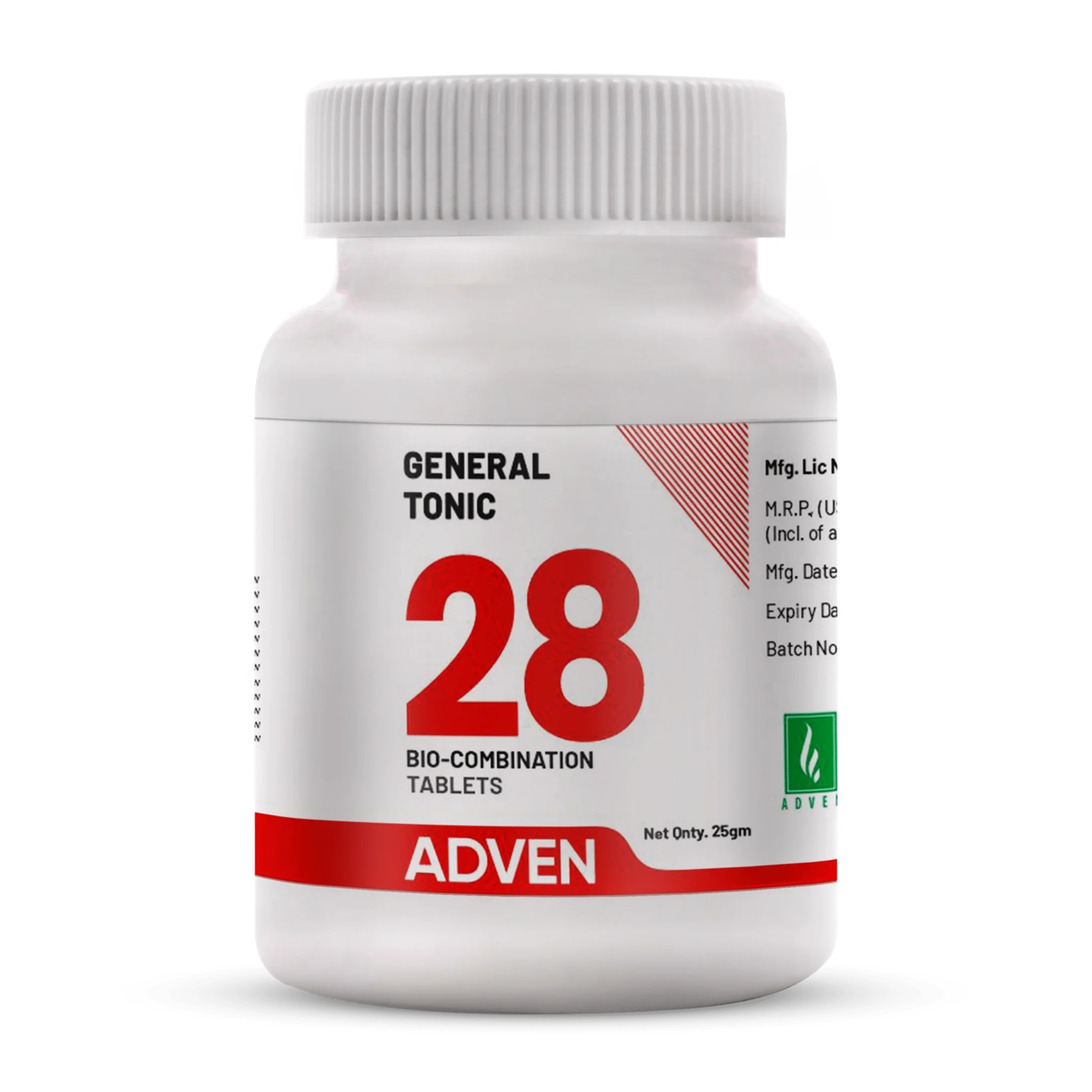 Bio-Combination 28 acts as a general tonic to improve overall vitality, reduce weakness, and support recovery after illness or surgery.