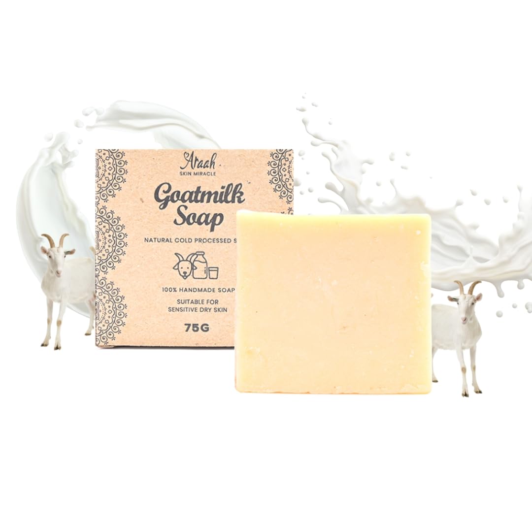 Experience the Power of Goat Milk: At Araah, we believe in harnessing the natural goodness of goat milk for your skincare routine. Our Goat Milk Soap is a luxurious blend of nourishing ingredients that will leave your skin feeling pampered and revitalized.Goat milk has been an integral part of the skincare regime for ages. It calms down the troubled skin, which makes it a great choice for sensitive dry skin.