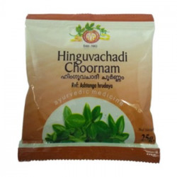 Description:Hinguvachadi Choornam is an Ayurvedic medicine, in herbal powder form. It is used in Ayurvedic treatment of indigestion, bloating and abdominal pain.