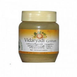 Description:Vidaryadi Ghritham is an Ayurvedic medicine, in herbal ghee form. This herbal ghee is made from Vidaryadi group of herbs, mentioned in Ashtanga Hrudayam. It is used for preparatory procedure for Panchakarma and also as medicine, used in the treatment of diseases related to respiratory system.