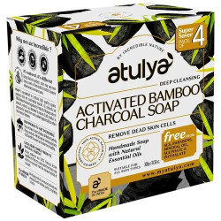 atulya Activated Bamboo Charcoal Soap is rich in antioxidants that help to protect the skin from pollutants, dirt, and toxins. It deeply cleanses the skin and exfoliates dead skin cells. This natural handmade soap hydrates your skin, gives it a natural glow, and makes it soft.