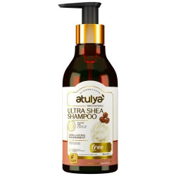 atulya Ultra Shea Shampoo contains a blend of shea butter and natural oils such as vitamin E, coconut, argan, and onion. This shampoo gently cleanses your scalp, removing product buildup while allowing it to breathe. Shea butter restores hair's luster and suppleness, preventing breakage and restores strength.