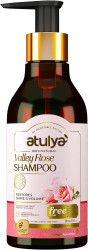 atulya Valley Rose Shampoo gently cleanses ypur hair, making them shiny, voluminous, and healthy. It moisturizes and tones the scalp, adds shine to hair, and envelops hair in a subtle rose aroma thanks to the natural goodness of rose hydrosol and pro-vitamin B5.