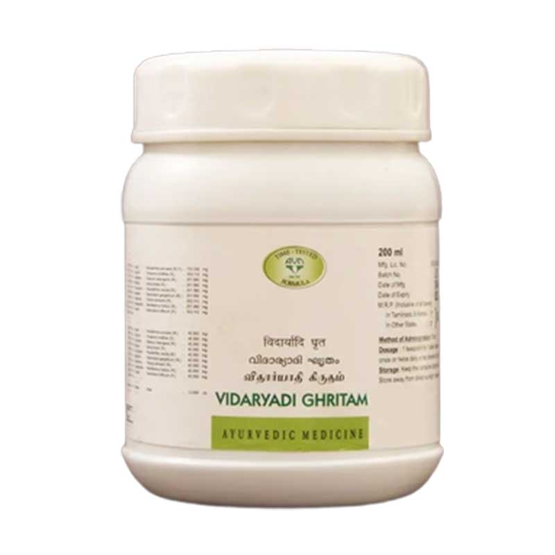 Vidaryadi Ghritham is an Ayurvedic medicine, in herbal ghee form. This herbal ghee is made from Vidaryadi group of herbs, mentioned in Ashtanga Hrudayam. It is used for the preparatory procedures for Panchakarma and also as medicine, used in the treatment of diseases related to the respiratory system.