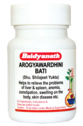 Arogyavardhini- The word Arogya specifies ‘good health whereas vardhini stands for ‘improve’ i.e. an ayurvedic formulation that can completely eradicate diseases and improves and promotes good health. Fortified with Shilajit (Asphaltum), highly rich in minerals like triterpenes, fulvic acid and humic acid essential for rejuvenating the body.