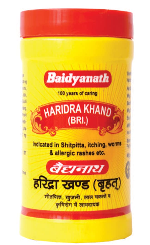 Haridra Khand (also spelled as Haridrakhandam & Haridrakhand) is an ayurvedic and herbal medicine used for skin diseases and allergies. It is highly useful in urticaria (chronic hives) and all skin disorders characterized by itching and skin rashes. It is also very useful in blisters and fungal infections of the skin.