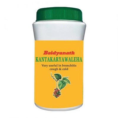 Kantakari Avaleha(Kantakaryavaleha,Kantakaradyavaleha) is polyherbal Ayurvedic preparation in semi-solid form which is used to treat cough, asthma and other chest infections.