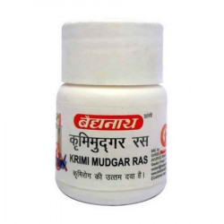 Baidyanath (Jhansi) Krimi Mudgar Ras Tablet is a classical ayurvedic medicine significantly blessed with various healthful therapeutic agents. It holds purified sulfur, purified mercury, ajamoda, honey and vidanga as its principal ingredients. Krimi Mudgar Ras is typically indicated in the treatment of intestinal worm. One can also consider using Krimi Mudgar Ras for improving the digestion and treating all the indigestion-related complications. It can also have the capability to treat fever and the consequences of it. Dizziness, nausea, tiredness, vomiting and general debility are the issues where Krimi Mudgar Ras can show its huge influence. Sometimes hiccup could be extremely annoying but such complication can be effectively managed with Krimi Mudgar Ras. People have also found it fruitful to prevent sneezing.