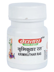 Baidyanath (Jhansi) Krimikuthar Ras Tablet is an ayurvedic medicine in tablet form which is used for various parasitic worms in the human intestine. The inorganic form and sulfides of mercury have wider application in the preparation of ayurvedic medicines and sulfides of mercury is known as rasa sindoor, which is proven harmless.