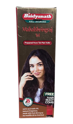 Baidyanath Mahabhringraj Tel is a herbal oil used in Ayurvedic treatment for hair fall, headache, neck pain and stiffness. It improves hair strength and promotes hair growth. It is useful in treating headache and earache. It is also useful in the treatment of Alopecia and premature baldness, grey hair and split hair problems.