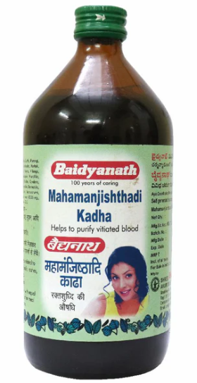 Mahamanjishtadi Kadha is a Classical Ayurvedic preparation with a decoction of 44 botanical herbs, is an excellent remedy for skin diseases and oozing boils, acne and pimples, skin rashes, redness and inflammation. It acts as antioxidant and helps to detoxify the body.