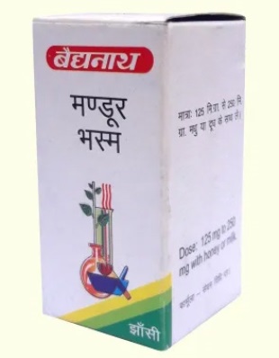 Mandur Bhasma Uses: It is used in treatment of Anemia, Jaundice, anorexia, inflammatory conditions, injuries.