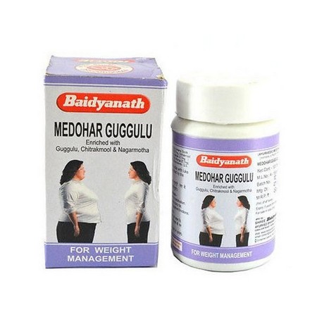Baidyanath Medohar Guggulu Tablet is an anti-obesity herbal medicine that helps in burning fat and improving digestion. It helps to make a slim and beautiful body, controls appetite and is free from any kind of side effects.