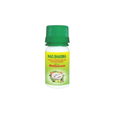 In ayurveda, Naga Bhasma is used for the management of the frequent urination, urinary incontinence, diabetes mellitus, spleen enlargement, leucorrhoea, hiatus hernia, impotency, rheumatoid arthritis, etc. It is likely to act on the organs such as stomach, intestine, pancreas, urinary bladder, testes, bones, muscles, joints and ligaments.This medicine should only be taken strictly under medical supervision.