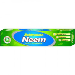 Baidyanath Neem Toothpaste is enriched with the essence of neem leaves perfect for all oral problems like bad breath, gum decay, and dental cavities. It gives brilliant and healthy, white, strong teeth. It acts as an antibacterial agent and fights plaque. It is free of harmful ingredients like artificial sweeteners and flavors. It is healthy as it is free of sodium lauryl sulfate, fluoride, paraben, alcohol, and gluten.