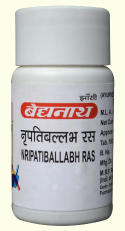 Nripatiballabh Ras is a herbomineral-metallic Ayurvedic medicine. It is a Ras Aushadhi. Mercury is known as Rasa in Ayurveda and medicines that are prepared using purified mercury, purified Sulphur, Bhasma etc. are named as Ras Aushadhi (Mercurial Preparations). Para, Parad, Rasa or mercury is a heavy metal that remains liquid at room temperature. It is used in Ayurveda only after proper detoxification as per classical Ayurvedic texts. Parad is ingredient of numerous medicines due to its powerful medicinal properties.