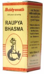 Baidyanath Roupya Bhasma with Silver is calcified ayurvedic drug used in eye diseases, debility, anal fissure, cough with yellow sputum, frequent urination, jaundice, anemia, enlargement of spleen, liver hypertrophy, fatty liver, oligospermia, physical weakness, epilepsy, hysteria and neurological diseases. Roupya Bhasma is reduced silver nanoparticles used in ayurvedic medicine for various purposes.
