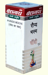 Baidyanath Roupya Bhasma with Silver is calcified ayurvedic drug used in eye diseases, debility, anal fissure, cough with yellow sputum, frequent urination, jaundice, anemia, enlargement of spleen, liver hypertrophy, fatty liver, oligospermia, physical weakness, epilepsy, hysteria and neurological diseases.