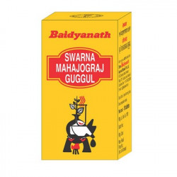 Baidyanath Swarna Mahajograj Guggulu contains herbal and mineral ingredients in a tablet form.