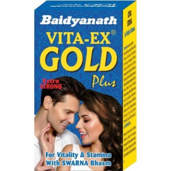 "Baidyanth Vita-Ex-Gold Plus Capsule" is specially formulated with Swarna Bhasma along with 14 valuable herbs. It restores the psychological and functional homeostasis in the body, so it strengthens mind and act as an body Rejuvenator. Each of the ingredient is a complete energiser by itself.