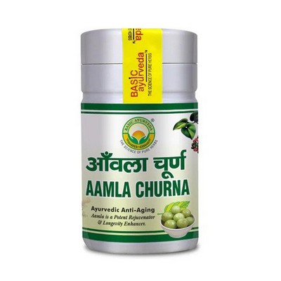 Basic Ayurveda Amla Churna is prepared from amla powder. Amla is used as an ancient herb for the treatment of digestion problems. It is traditionally believed to be an excellent herb for constipation and other digestion problems. It consists of natural vitamin C that acts as an anti-oxidant and prevents the formation of free radicals. It gives quick relief from digestive disorders as it helps in balancing the pH of the stomach.