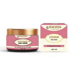 ULTRA HEALING FOOT CRÈME is a unique blend of organic herbs, along with aromatherapeutic essential & natural oils that is formulated to intensely hydrate and nourish the stressed skin on the feet. It soothes and smoothes the skin especially around the heels, reducing dryness, cracking and calluses. It releases stress and calms ankle inflammation and swelling. With anti-fungal action, it counters the onset of infections.