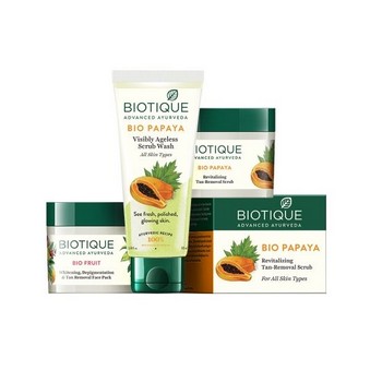 Bio Papaya Scrub-75 gms-This Revitalizing Tan-Removal scrub is blended with pure papaya fruit to dissolve dead surface cells, unclog pore openings and smooth the way for clear skin to surface.