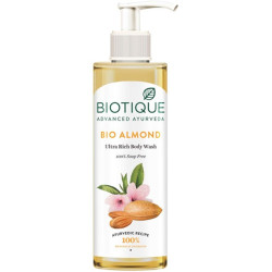 Bio Almond deeply nourishing body wash is blended with Almond, Neem and Sunflower oils, mixed with Turmeric and Wild Turmeric, to gently wash away body impurities, without disturbing the skin's natural pH balance. Cleanses, softens and brings out the body's natural brightness.