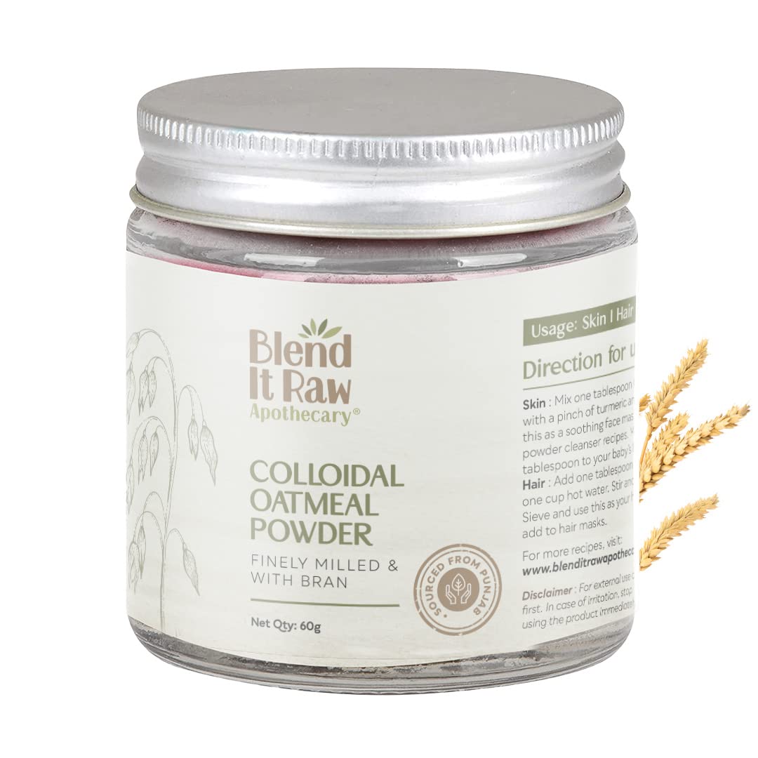Colloidal oatmeal is a fine powder made from whole oat kernels with bran, used as a skin protectant that soothes itchiness, inflammation, and sloughs away dead skin cells. Unlike oat powder made at home, colloidal oatmeal has a smaller particle size which makes it suitable for making homemade powder cleansers.