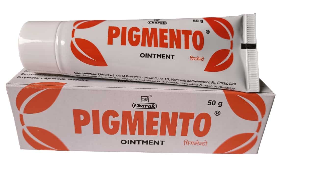 Charak Pigmento Ointment the main ingredient Psoralea corylifolia stimulates melanocytes to synthesize melanin, the pigmenting agent. It helps in treating Vitiligo, which refers to a long-term skin condition characterized by patches of the skin losing their pigment. It is also used to treat acquired white patches.