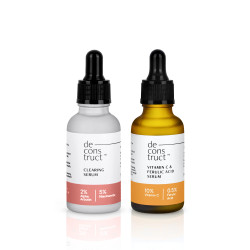 The brightening duo of Vitamin C and Clearing Serum is a potent duo to bring brightness to the skin. This duo prevents sun damage by suppressing the production of free radicals and reducing dullness & tanning.