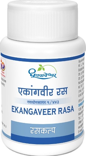 Dhootapapeshwar Ekangaveer Rasa Tablet is an Ayurvedic formulation that helps to pacify the vitiated Vata dosha and reduces Vata Vahini Kshobha. It is indicated in Hemiplegia, Dhanurvata, Ardhangavata, Grudhrasi, Vishvachi, and Avabahuk.