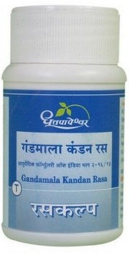Dhootapapeshwar Gandamala Kandan Rasa Tablet is an ayurvedic medicine that is effective in the treatment of goitre and other thyroid-related diseases. It is an herbo-mineral preparation with properties that help in digestion, acts as a blood purifier and rejuvenator.