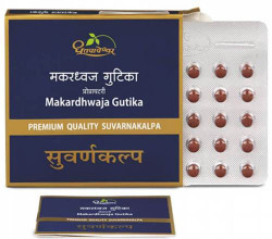 Dhootapapeshwar Makardhwaj Gutika Standard Quality Suvarnakalpa Tablet is usually used to treat sperm-related problems. It may improve sperm motility and quality and may increase the virility and vigour of the individual.