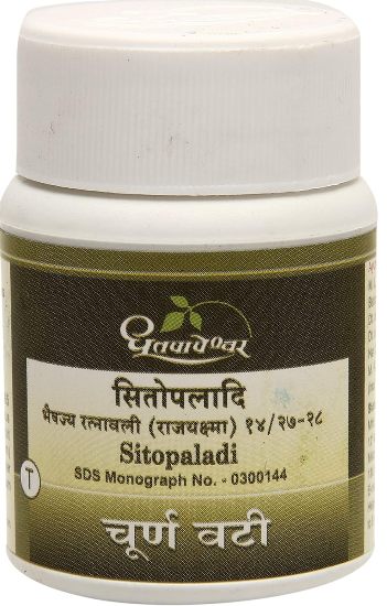 Dhootapapeshwar Sitopaladi Choorna contains Sita (Sharkara), Vanshalochan, Pippali, Ela, and Twak as active ingredients.