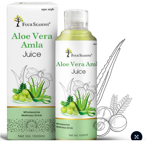 Four Seasons Aloevera Amla Juice is a natural way to boost your immunity. Made from pulps of two herbs- Aloe Vera and Amla, this juice is free from any synthetic elements, hence it is in its purest form. Aloe Vera + Amla Juice is a 100% natural way to boost your immunity. It is made from hand-picked herbs and consists of no flavour, oil, or external impurities. If taken daily with suggested usage, it will provide great protection against numerous diseases.