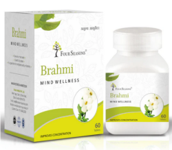 Four Seasons Brahmi Tablet is an Ayurvedic herbal supplement that is believed to have several potential benefits for mental functioning and overall well-being. The tablet contains Brahmi (Bacopa monnieri), an ancient Ayurvedic herb known for its ability to enhance memory power and cognitive function. The tablet is believed to support healthy cognitive functioning by promoting mental clarity, alertness, and overall brain health. Four Seasons Brahmi Tablet are helpful in managing age-related memory loss due to the presence of antioxidants. It may reduce the damage caused because of free radicals and enhance learning and retaining potential in older people. Brahmi helps to balance Vata and gives a calming effect on the nervous system.