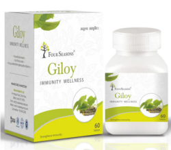 Four Seasons Giloy Tablet is a natural and ayurvedic formulation that can help boost immunity, purify the blood, alleviate respiratory and skin ailments, and improve digestion. Giloy is a powerhouse of antioxidants, which help fight free radicals, keep the body cells healthy, and eliminate diseases. It helps remove toxins, purify the blood, and fight bacteria that cause infections. It helps get rid of recurrent fevers. Giloy is anti-pyretic, helps reduce signs and symptoms of several life-threatening conditions like dengue, swine flu and malaria, and can tackle viruses. It is one of the five herbs in an ayurvedic composition described as panchatikta (Five Bitters), that help in case of viral fevers and skin diseases. It helps to reduce inflammation and improve overall health. The anti-inflammatory and anti-bacterial properties help to reduce the symptoms of respiratory and skin disorders. It is also a natural laxative and can help to minimise digestive problems such as constipation, indigestion, and acidity. The tablets are rich in antioxidants and are a natural immunity booster.