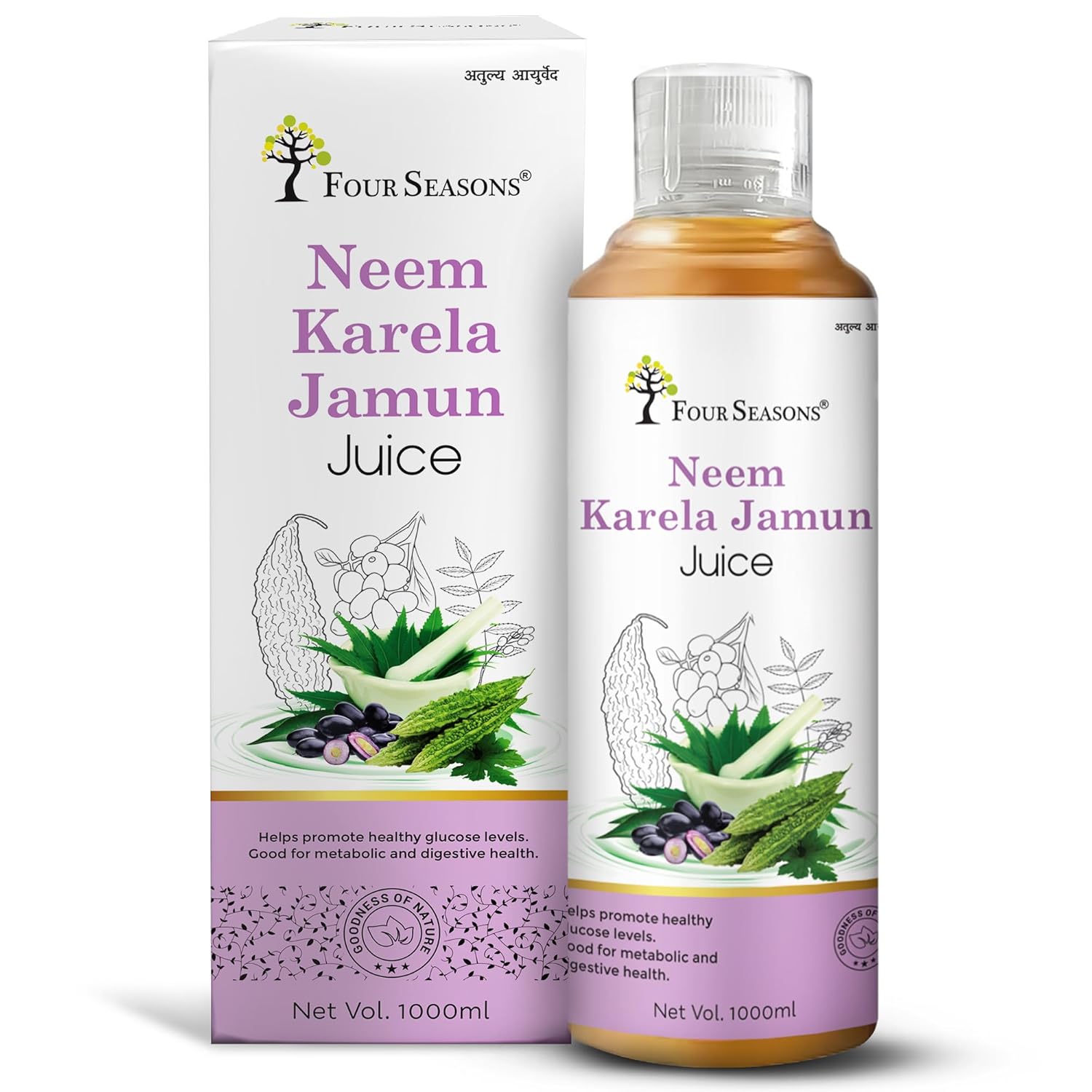 Four Seasons Karela Jamun Juice is an effective natural way to treat high blood sugar. Karela acts as naturally to improve blood glucose levels, Jamun helps in controlling blood sugar by stimulating the pancreas. Together, they not only control blood sugar but also aid in the digestion. Karela Jamun Juice purifies the blood and acts as an antioxidant. It works as an appetizer and helps in removing intestinal tract worms. It purifies the blood and fights infections.