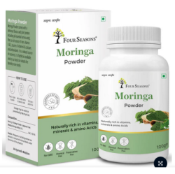 Four Seasons Moringa Powder is a super food that comes with a delicious flavor with 25% plant protein including all 9 essential amino acids, 24% fibre, rich source of iron, vitamin K & E, source of vitamin A & calcium, and antioxidants. It is a natural source of these nutrients, it is highly bioavailable, and so our body can absorb the benefits more easily. The powder is produced by harvesting, drying then milling the leaves of Moringa oleifera. The powder is extremely rich in nutrients. It contains 90 +nutrients and 40 + antioxidants. It is an excellent source of vitamin A, vitamin C, iron, protein, fibre, calcium, magnesium and potassium. Four Seasons Moringa Powder is enriched with Moringa which has high nutritious value. It is enriched with anti-oxidants and vitamins. It has anti-inflammatory properties and also helps in reducing the blood sugar level. It also has aphrodisiac properties and aids in promoting sexual wellness and fertility. It helps in improving overall health and wellness.