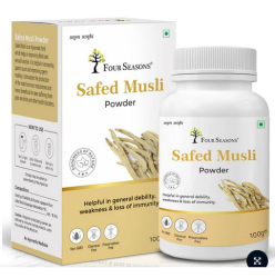 Four Seasons Safed Musli Powder is a dietary supplement formulated with safed musli that promotes overall health and well-being. It has aphrodisiac properties, which may help improve sexual performance in both men and women. It may help improve testosterone levels in the body and enhance physical performance. It can be used to prevent conditions associated with arthritis and may as an excellent source to increase libido in men and improve sexual performance and treats sexual disorders such as erectile dysfunction.