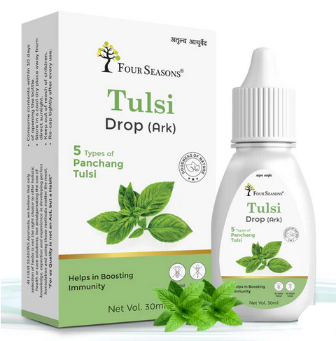 Four Seasons Tulsi Arka Drop is an ayurvedic tulsi drop with a unique blend of five kinds of basil or tulsi. Tulsi is known for its myriad medicinal properties and has antibacterial, antifungal, antipyretic, antioxidant, and antiseptic properties. Four Seasons Tulsi Arka Drops is antibacterial and suitable for cold and cough. It is formulated with natural ingredients. Tulsi Arka provide relaxation to the mind and body. It helps to reduce inflammation and fight harmful microbes. Being rich in anti-oxidants, it is renowned for its healing powers. Four Seasons Tulsi Arka Drop enriched with anti-viral properties, help to boost immunity, to eradicate cough, cold, fever and allergy problems.