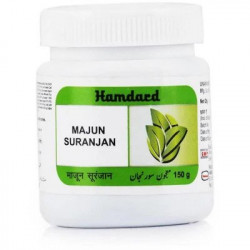 Hamdard Majoon-e-Suranjan, is an Unani herbal confection of Suranjan Shireen (colchicum), Zanjabeel (dry ginger), Zeera Siyah, Post Halela Zard, Turbud Safaid, Asal (honey) or Sugar and some other ingredients.