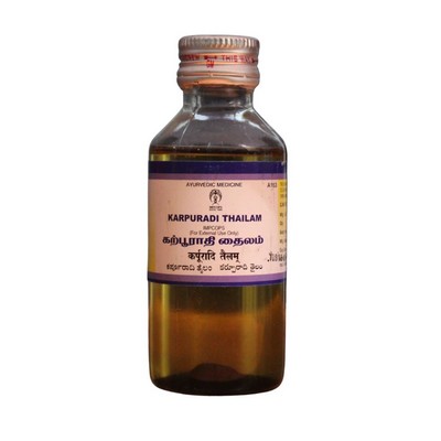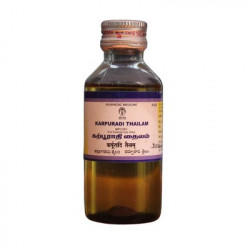 The Karpooradi Thailam is an ayurvedic massage oil used for reducing cramps, pain, stiffness and numbness.