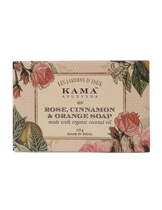 KAMA Ayurveda's Rose Orange & Cinnamon soap is a perfect blend enriched with Organic extra virgin coconut, Jojoba and Castor oil.