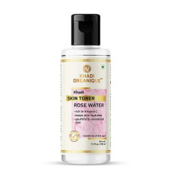This KHADI ORGANIQUE ROSE WATER SKIN TONER works as an astringent & antiseptic that helps to cleanse skin & keep hydrated throughout the day. This skin toner acts as a superb emollient to protect the skin from moisture loss and preventing free radicals and toxins from entering the skin. It contains Vitamin C in rich quantity that helps to stimulate skin cells and the production of collagen, resulting in more youthful and revitalized skin. Roses has as astringent property that works to tone up & hydrates the skin as it keeps the skin looking refreshed & plump, resulting complexion feeling fresh & revitalize.