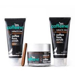 mCaffeine Body Deep Exfoliation Kit:Espresso brewed strong for exfoliation! This Deep Exfoliation Kit has Espresso Coffee Face Wash, Espresso Coffee Face Scrub and Espresso Coffee Face Mask, a perfect line up for deeply exfoliating and energizing your skin.