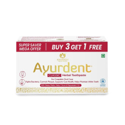 Discover Ayurdent Classic, the authentic Ayurvedic toothpaste designed for holistic family dental care. This gentle yet powerful toothpaste is free from harsh chemicals like SLS, foaming agents, whiteners, fluoride, and artificial sweeteners, making it suitable for all ages in your family, from children to grandparents. Infused with a blend of potent herbs, Ayurdent Classic ensures excellent oral hygiene. Its herbal formula effectively combats bacteria, controls plaque and tartar, prevents gum bleeding, and promotes whiter and stronger teeth. Plus, here's an exclusive offer: Buy 3 Ayurdent Classic toothpastes, and you'll receive one absolutely free! Incorporate Ayurdent Classic into your family's daily oral care routine and enjoy the benefits of holistic dental wellness for everyone in your household.
