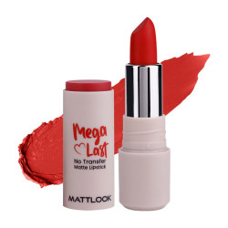 Unleash the power of effortless beauty with our Mega Last No Transfer Matte Lipstick. The one swipe unique and remarkable formula showcases color intensity like no other. It's crafted with care to give your lips a look that truly stands out. It is blended with Hyaluronic acid & Vitamin-E that glides onto your lips with the smoothest finesse. No need to worry about smudging or leaving a mark on your coffee cup as your look remains impeccable. A world of vivid, long-lasting colors that make a statement with every swipe. Say hello to the matte finish you've been dreaming of.
